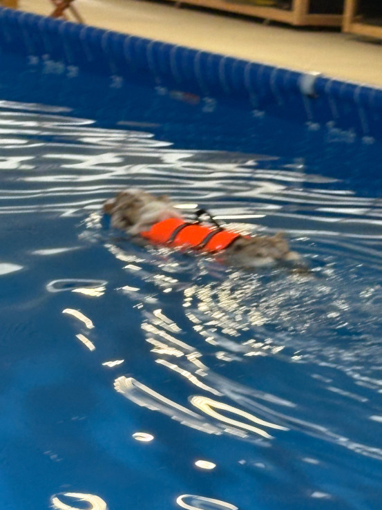 She is a perfect example of the versatility of an Aussie. She loves to catch a frisbee with great athletism, she is great at dog agility, she loves to go hiking, she used to herd the chickens when we free ranged them and if I'm swimming she will swim with me. I retired her after having 8 litters.